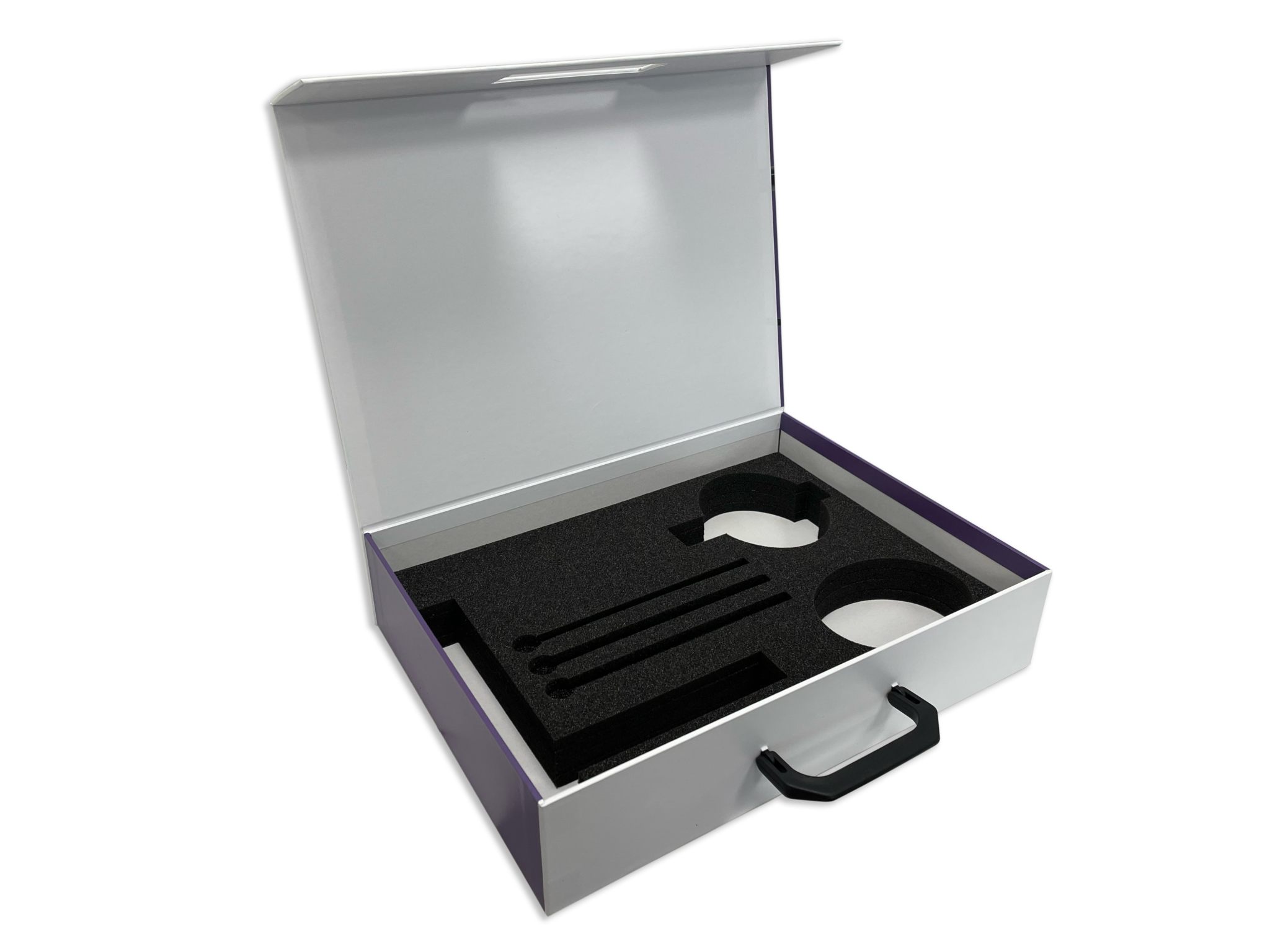 Nous pouvons tout aussi bien élaborer des valises de démonstration avec des cales intérieures, un maintien par un système d’aimants, ou bien une poignée rigide afin de simplifier son transport.